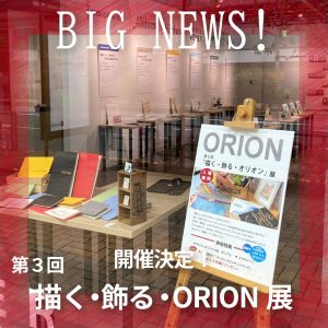 描く・飾る・ORION展 描く・飾る・ORION展は、 「描く」たのしさと 「飾る」よろこびを、 ”「 ORION」の紙と活動 ” を通じて広くお…