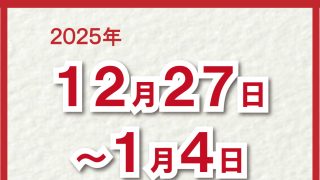 情報2025.11.10年末年始休業のお知らせ 12月27日㈯ ~1月4日㈰