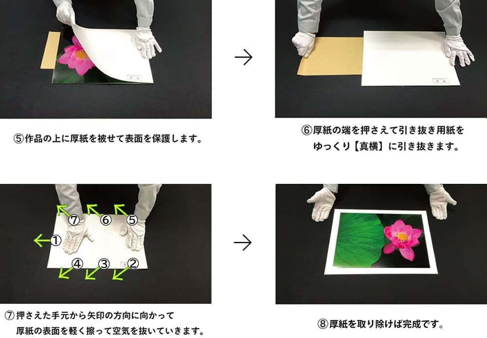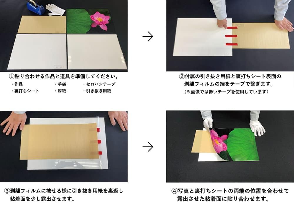 写真などのプリントを行った作品を貼り合わせて歪みを防止するシートです。