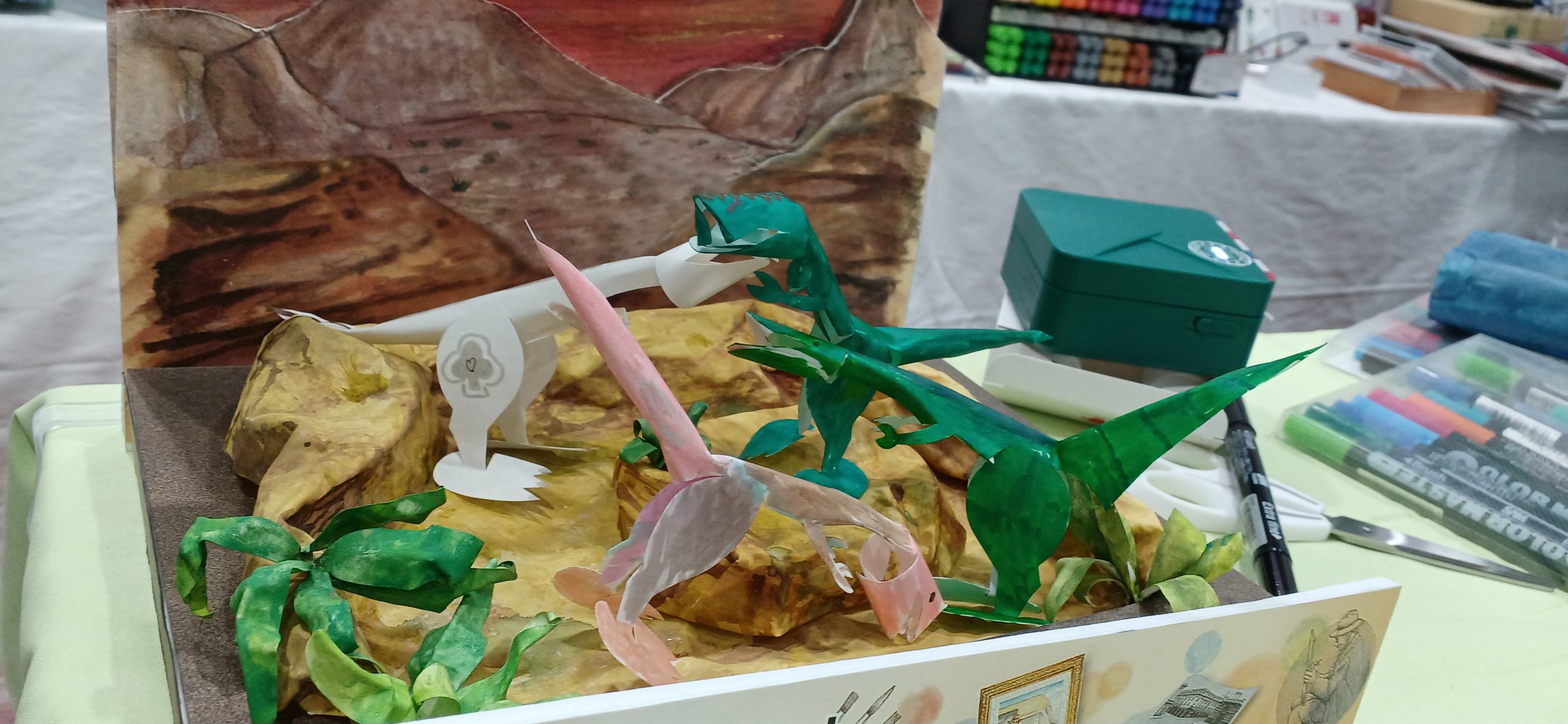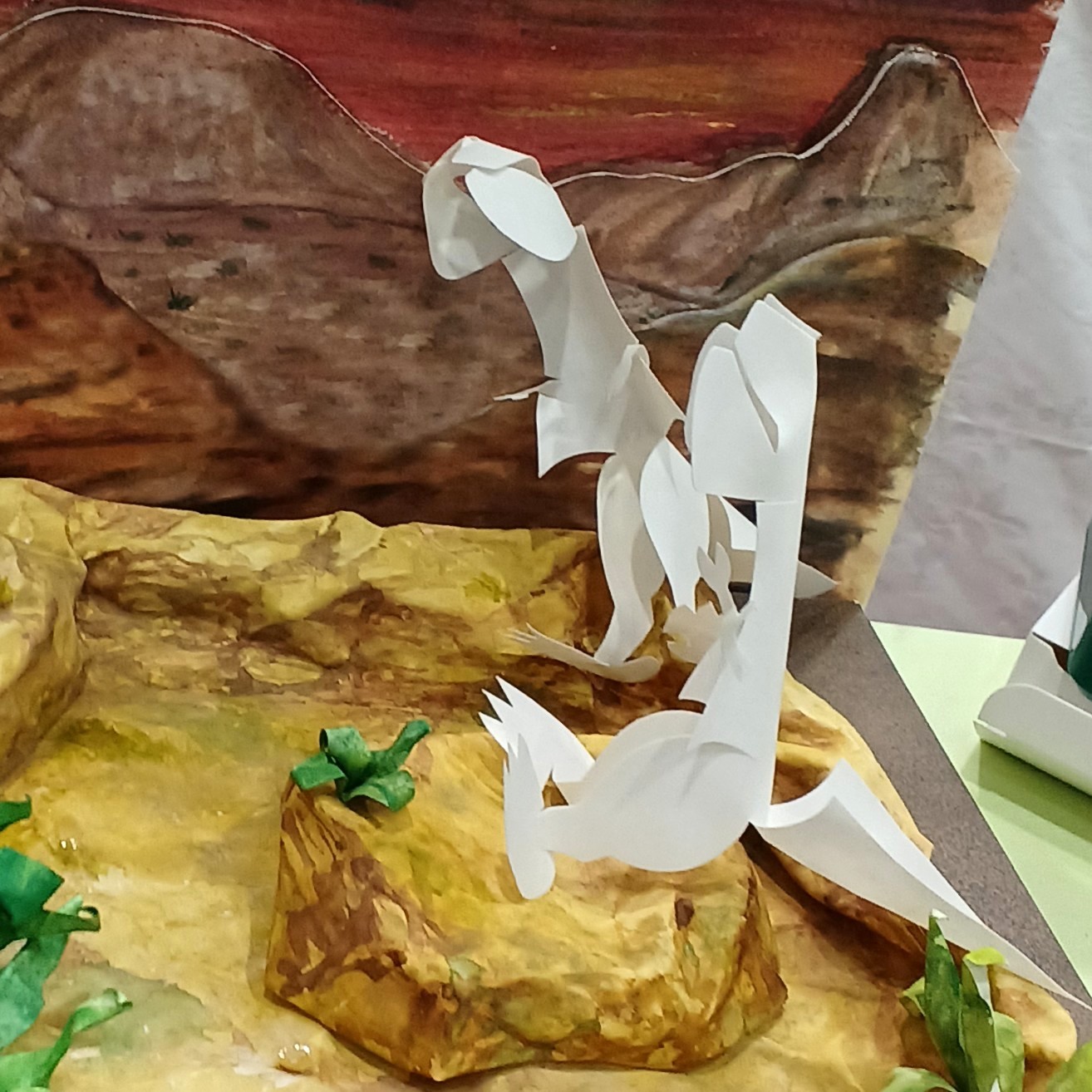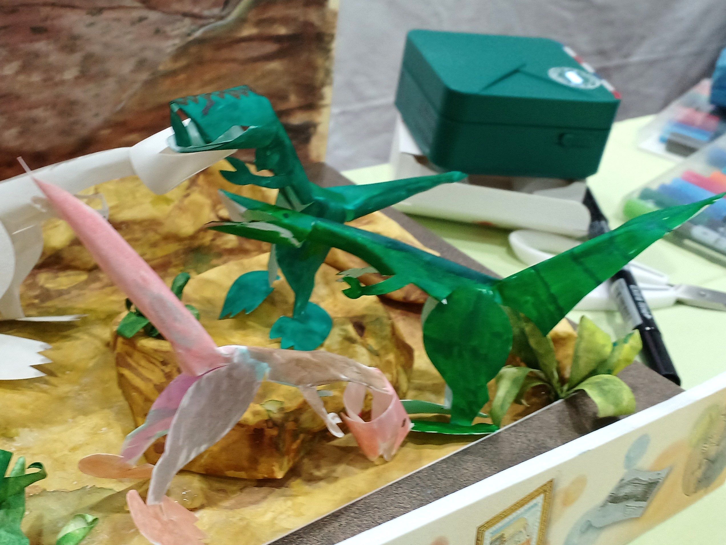 小中学生招待日には、ミスティックペーパーのミニザウルスを作るワークショップを開催しました!
