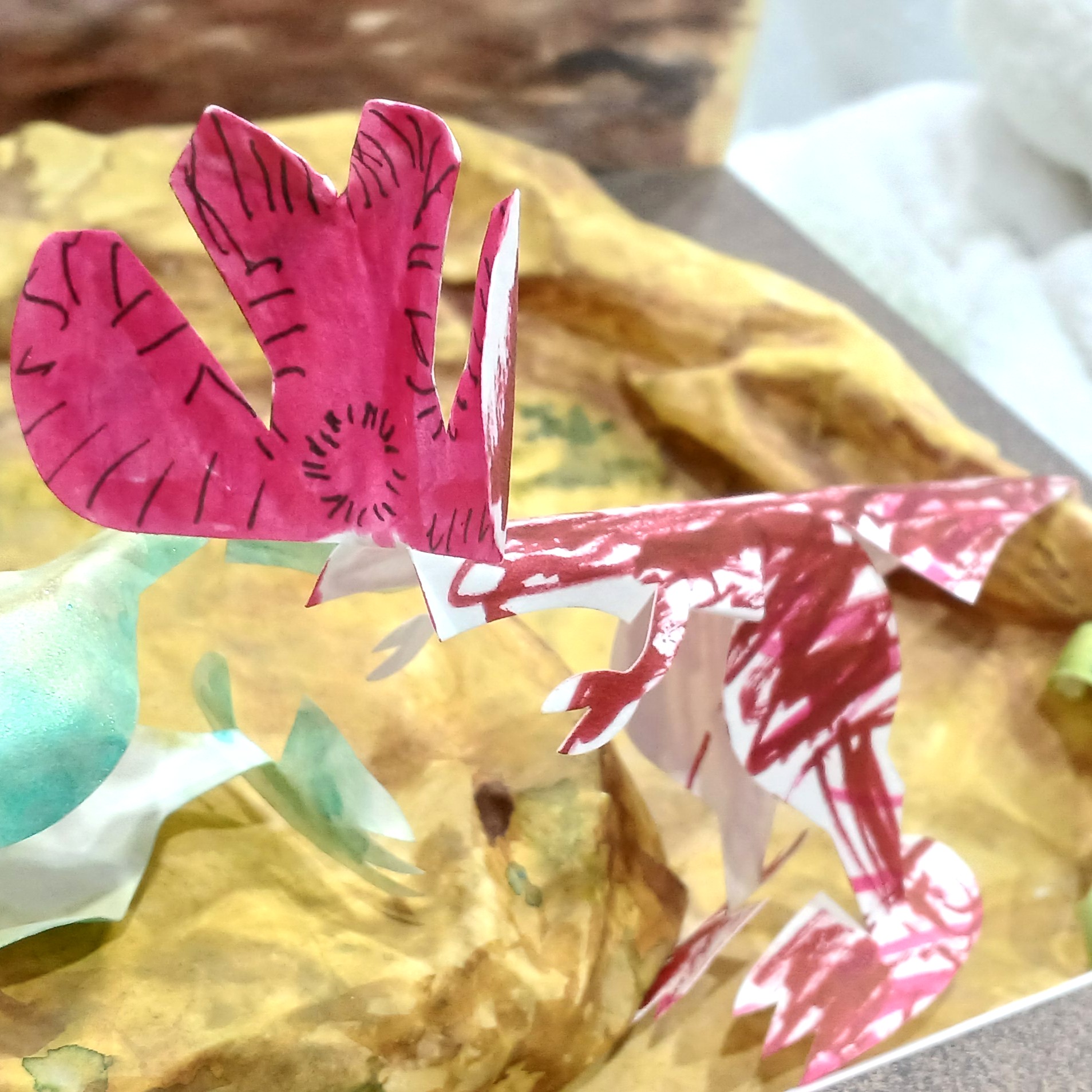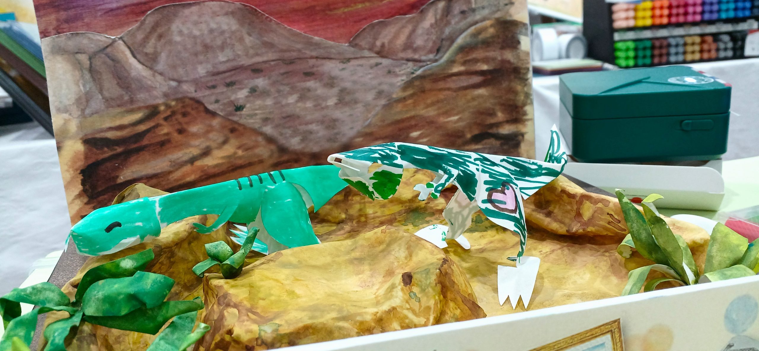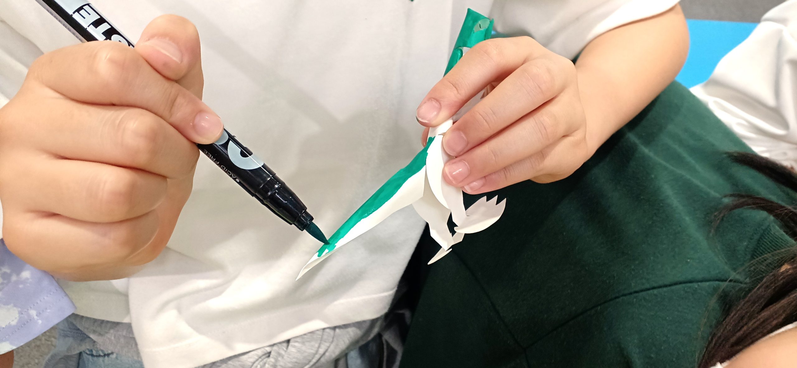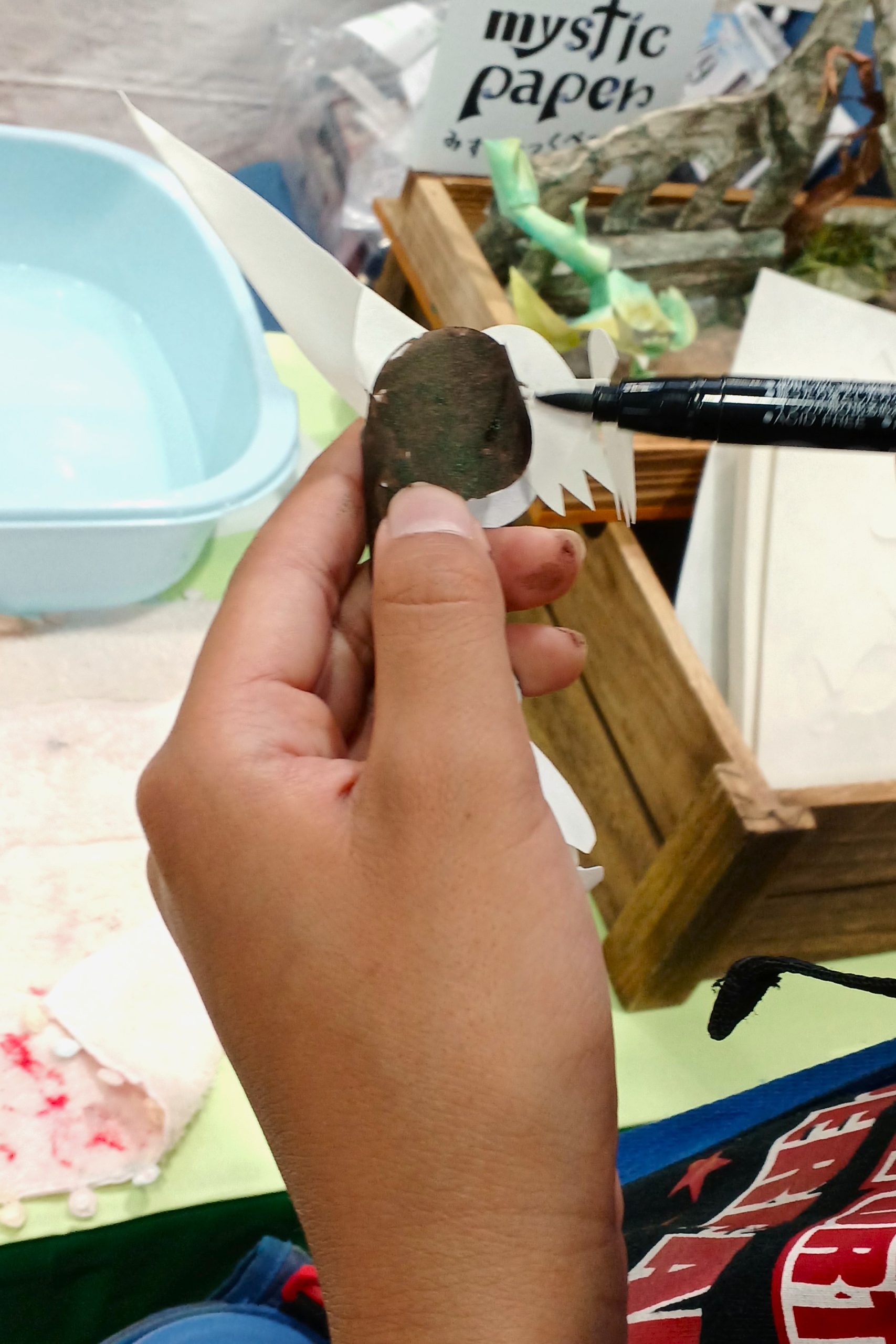 小中学生招待日には、ミスティックペーパーのミニザウルスを作るワークショップを開催しました!