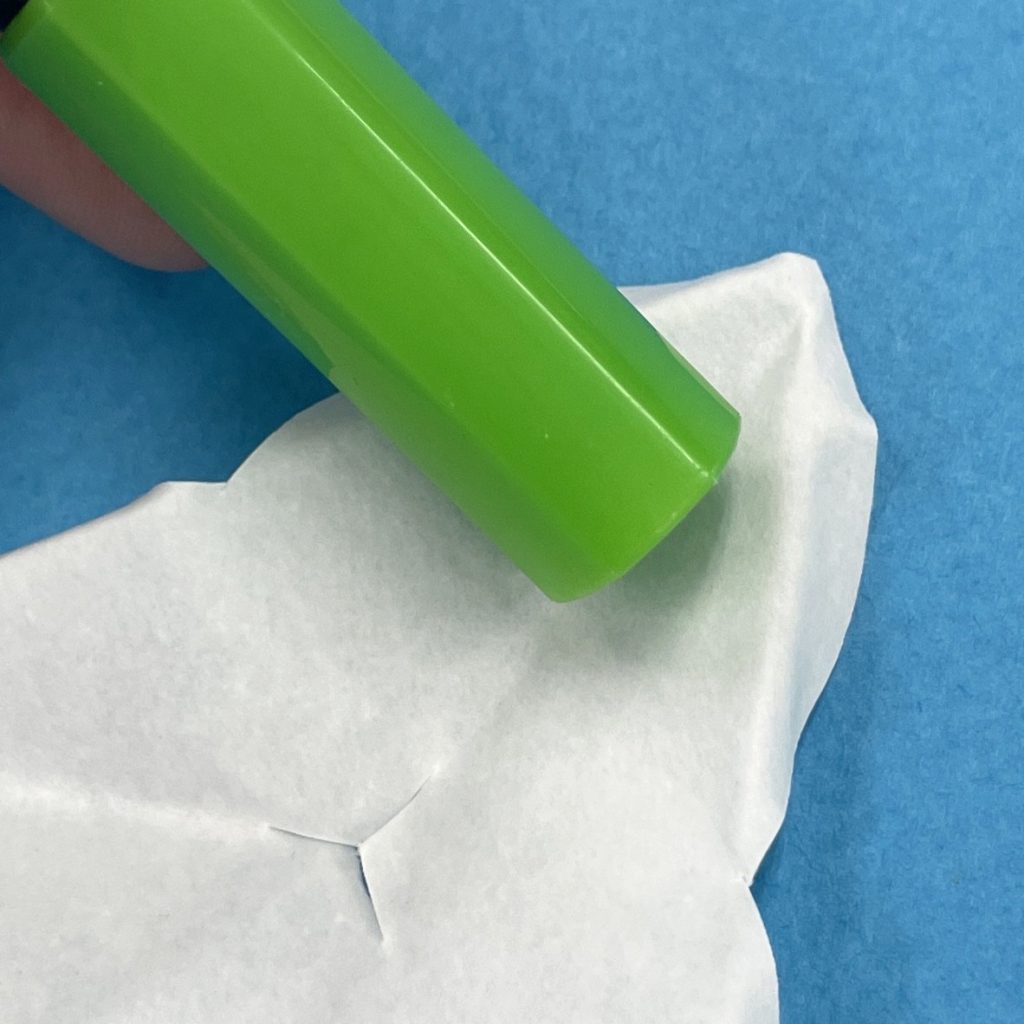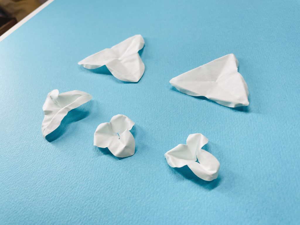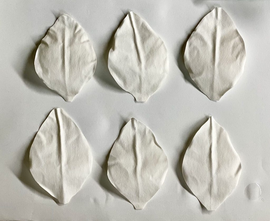 水に濡らして、形を作りこみます。微妙なシワや、丸みをつけていきましょう。