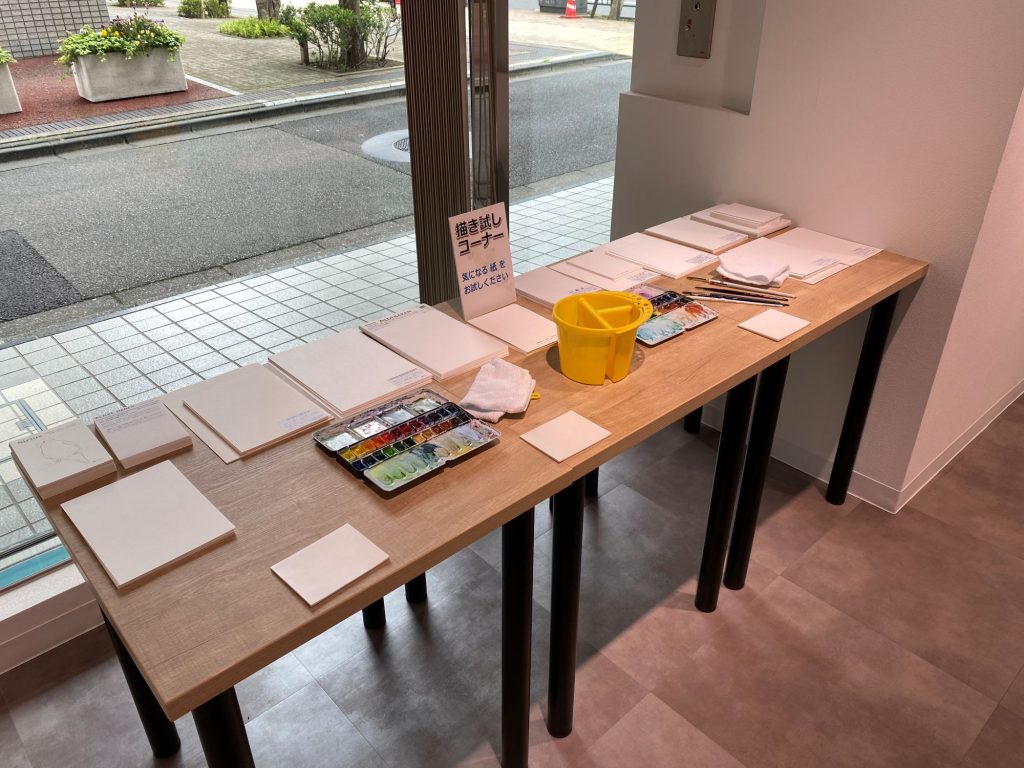 ”描く・飾る・ORION展”では、アーティストの感性を最大限に引き出すORIONのオリジナル紙の質感を、実際にお試しいただける展示や体験コーナーを設けております。
