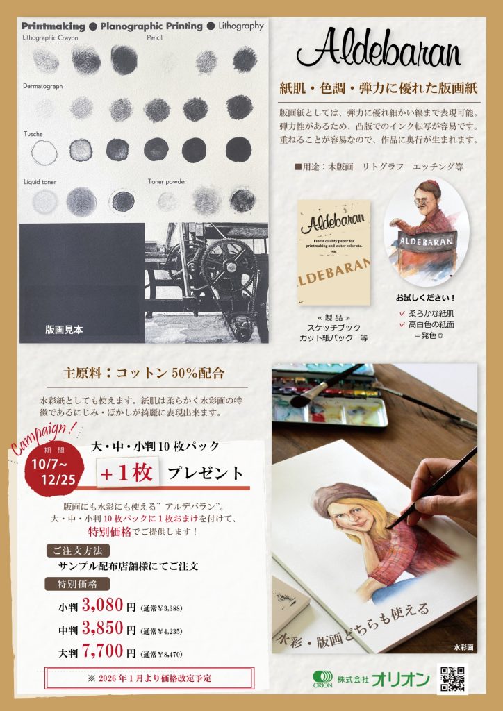 画材・版画用品を取り扱う小売店様にご協力いただき、店頭にてアルデバランのサンプル紙を配布いたします。ご自宅でじっくりお試しいただき、アルデバランの魅力をご実感ください。