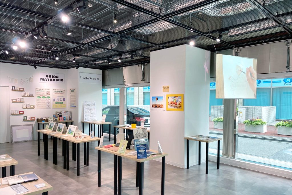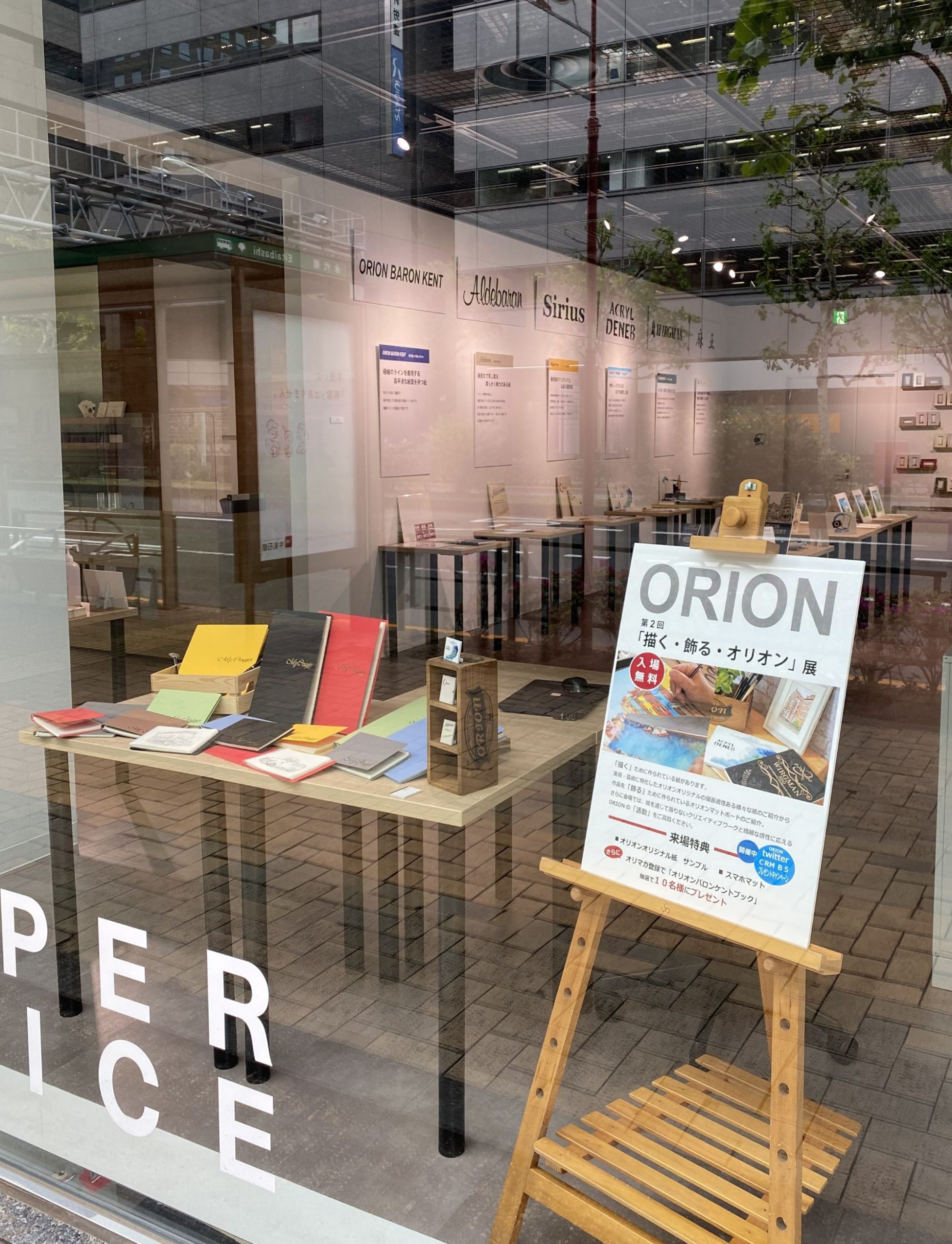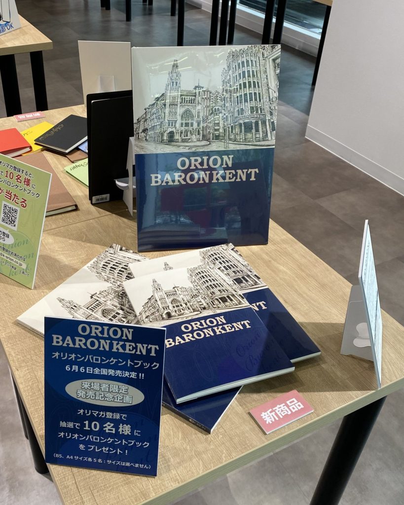 ORIONオリジナルの画材紙の描き試しコーナーを設置し、実際に描き心地をお試しいただいたほか、新商品 オリオンバロンケントブックやマイクロッキー・シリウスIJのお披露目の場となりました。