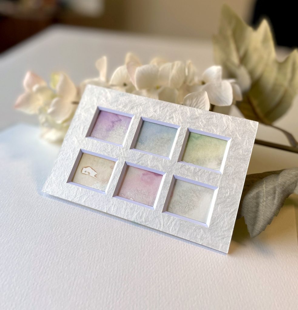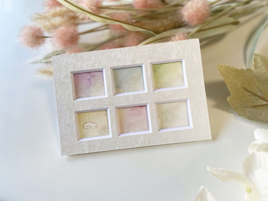 あるいは、窓や容れ物に見立てて、小さな連作を描いても素敵です。