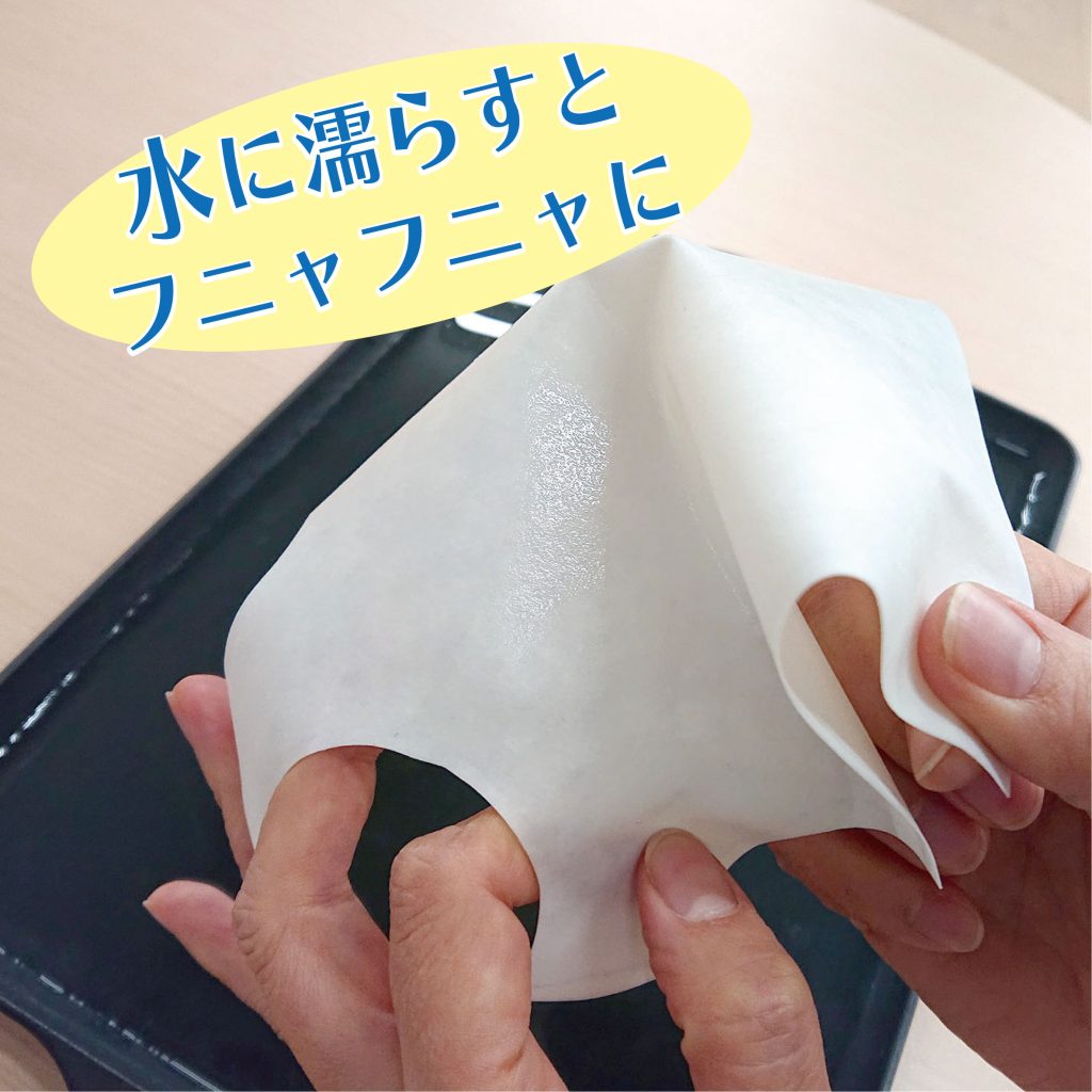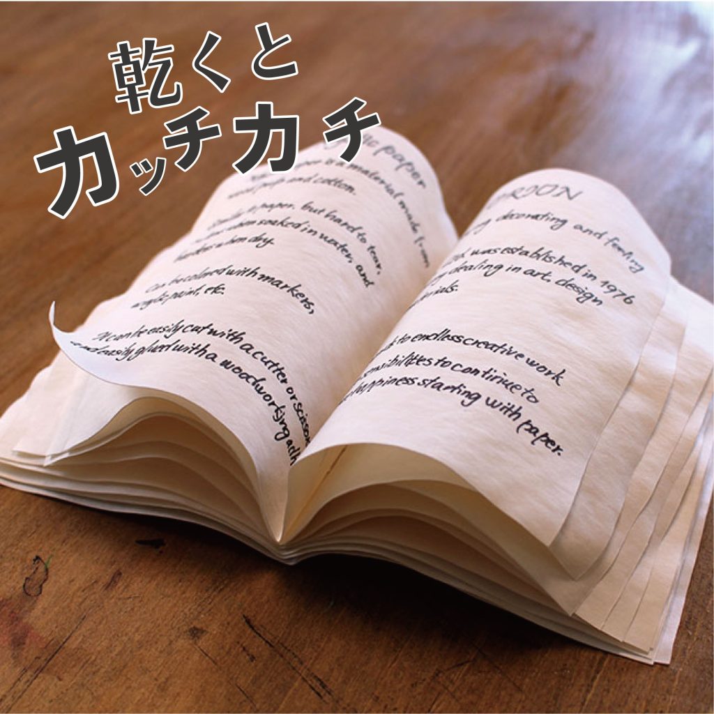 木材パルプや綿を原材料として作られた素材で、紙と似ていますが破れにくく、水につけるとやわらかくなり乾燥すると硬くもなる性質を持っています。