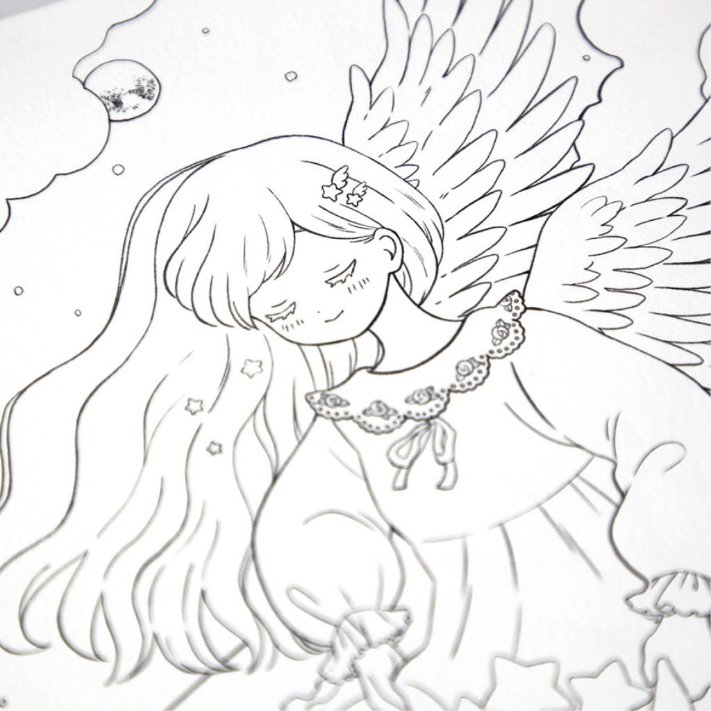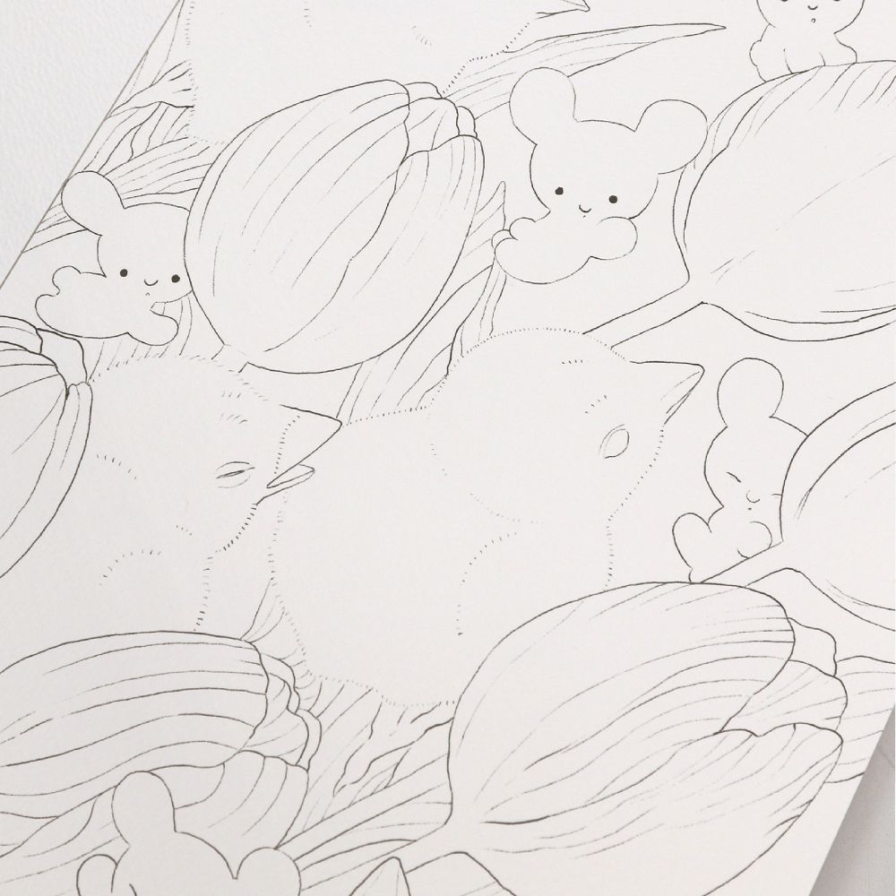アクリルデネブ水彩紙は300g厚さ0.45mmあり、水彩・アクリル絵具・マーカー・色鉛筆などの描画材に適しています。 サイズは原画そのままのA4サイズで観賞用としてもお楽しみ頂けます。 アクリルデネブは「細目」と「中目」を両面に組合せた紙ですが、今回の線画は「細目」側に印刷しております。