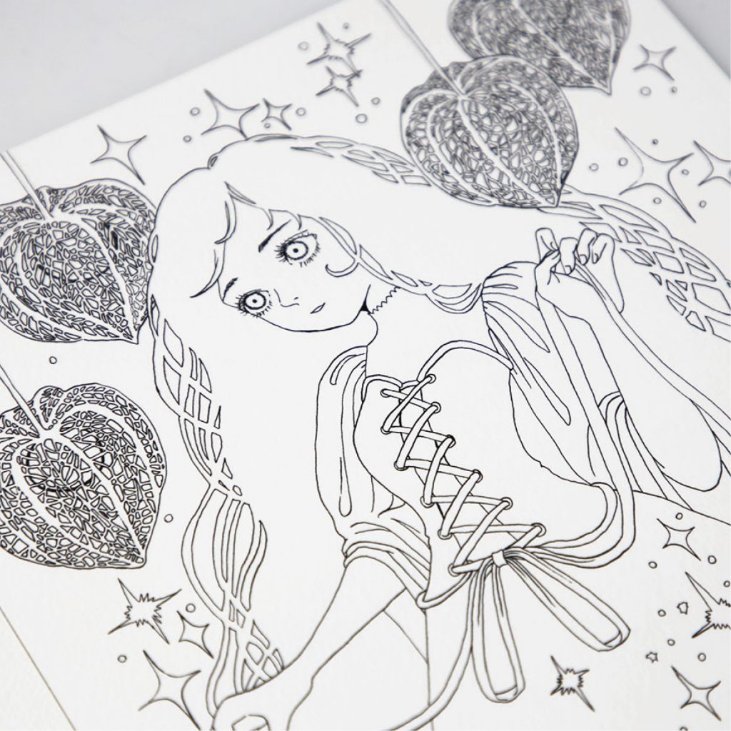 そんなアクリルデネブ紙を使用したオリオンオリジナル塗り絵シリーズイラストレーターこまちみゆた様の初の塗り絵ブックです。
