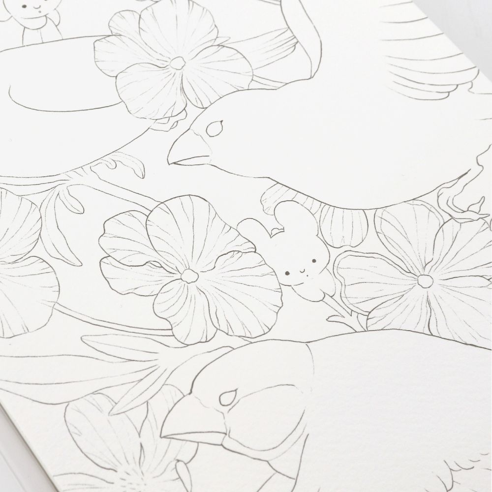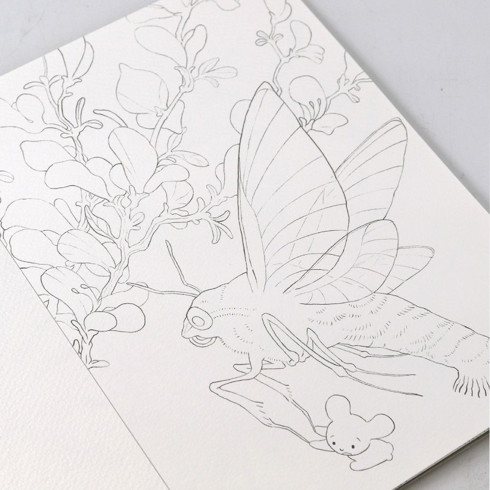 美麗な線画10枚がアクリルデネブ水彩紙に印刷されています。アクリルデネブ水彩紙は300g厚さ0.45mmあり、水彩・アクリル絵具・マーカー・色鉛筆などの描画材に適しています。