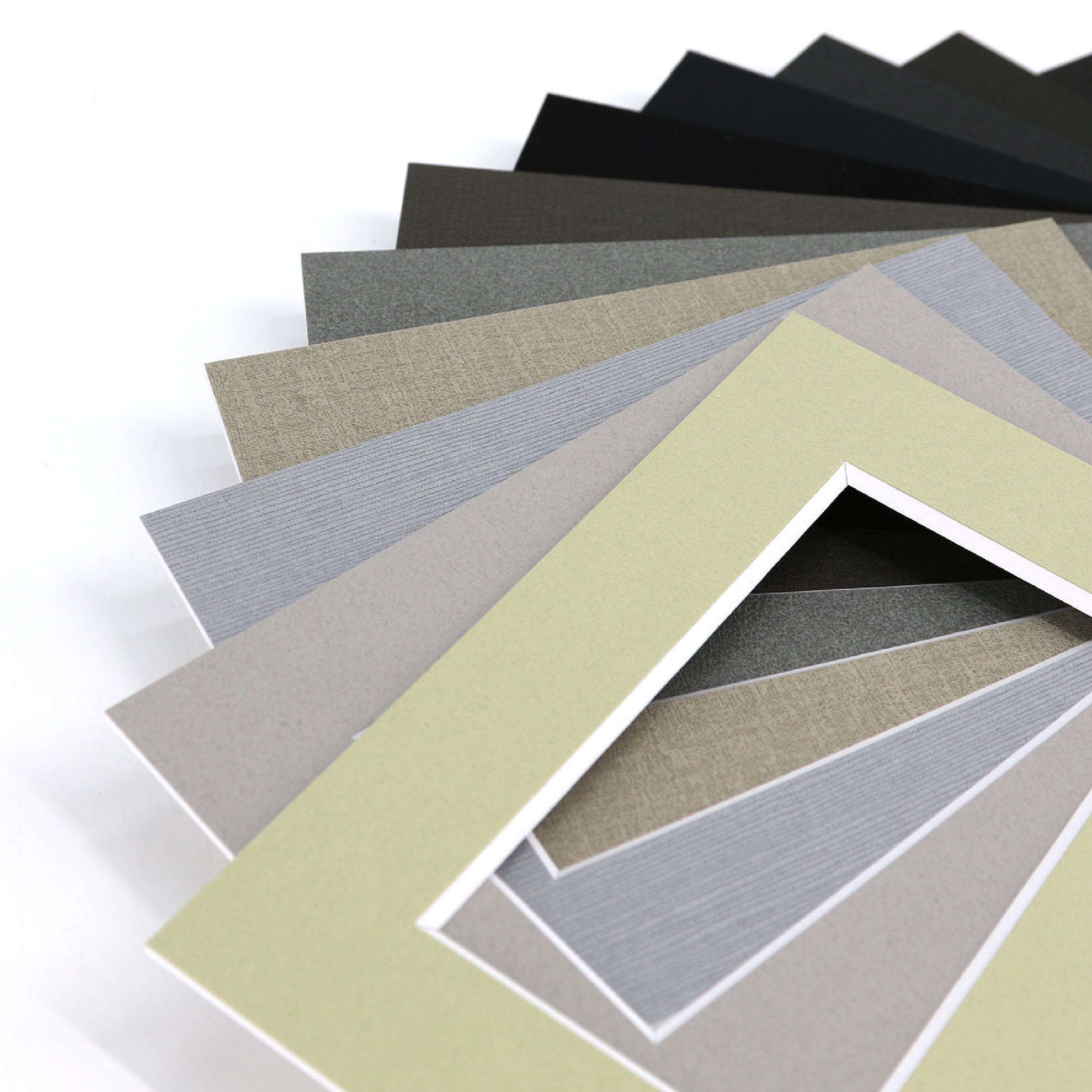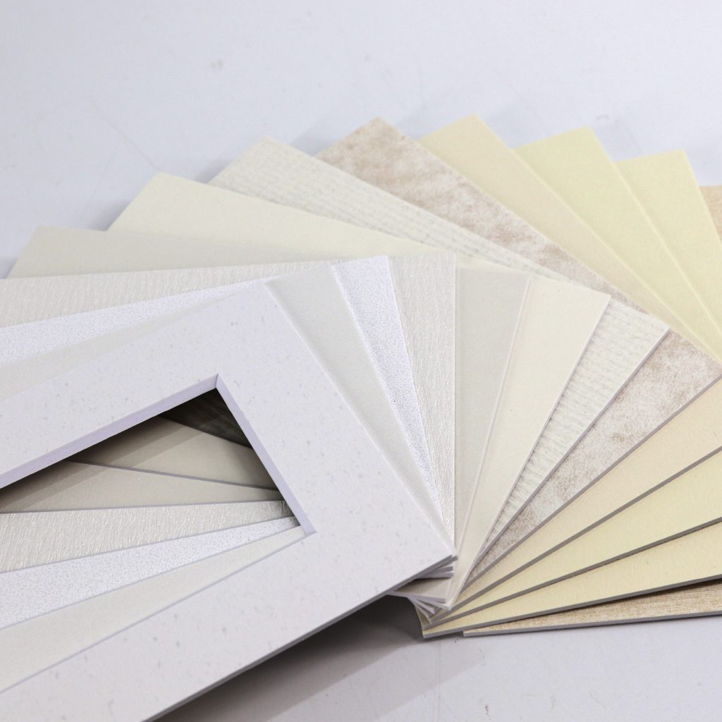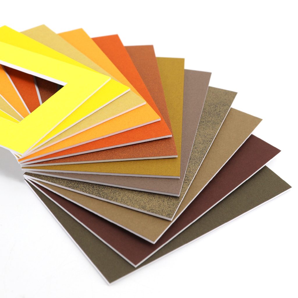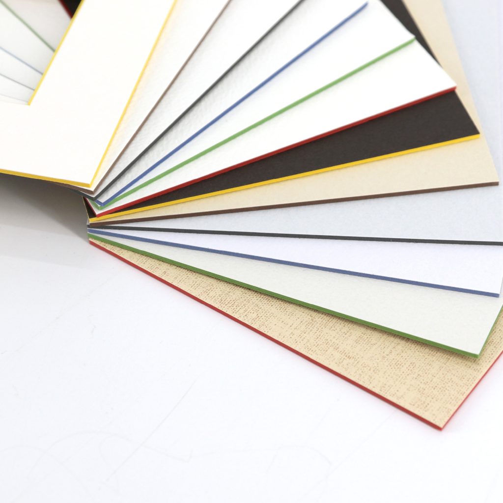 オリオンマットボードは特別抄造(特抄き)のオリジナル芯材は全て厳選された不純物を含まない100%バージンパルプを使用した中性紙。