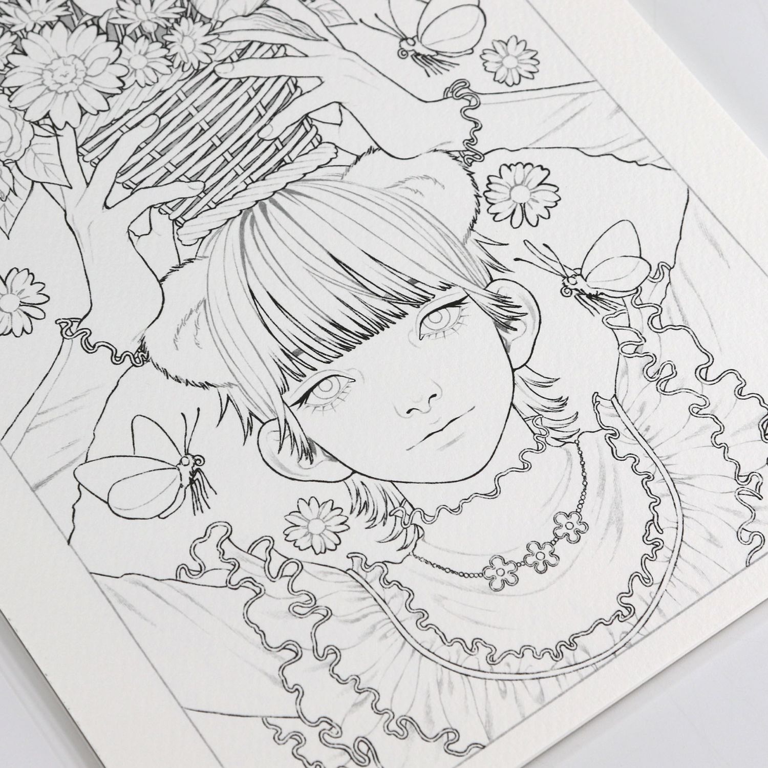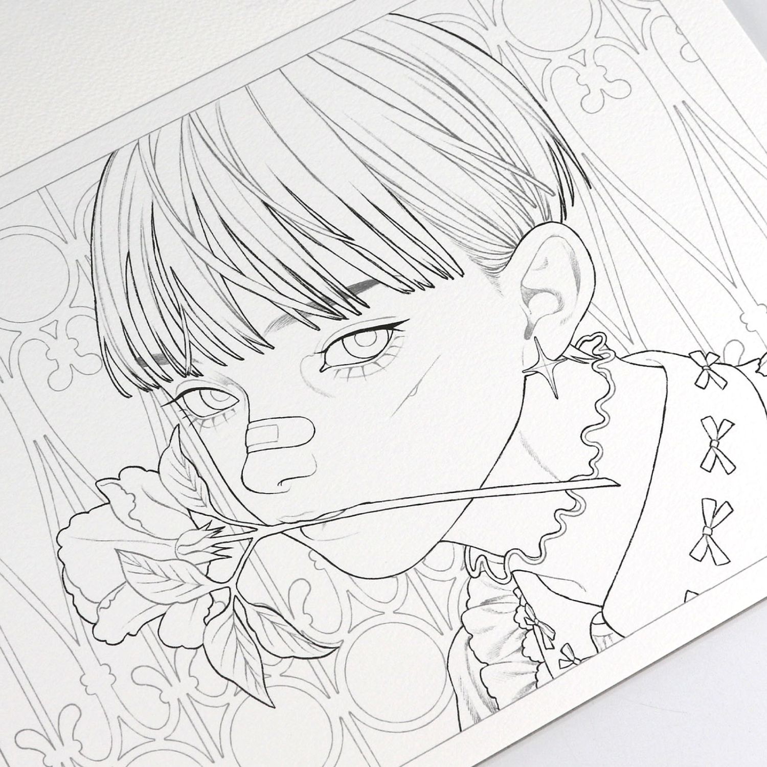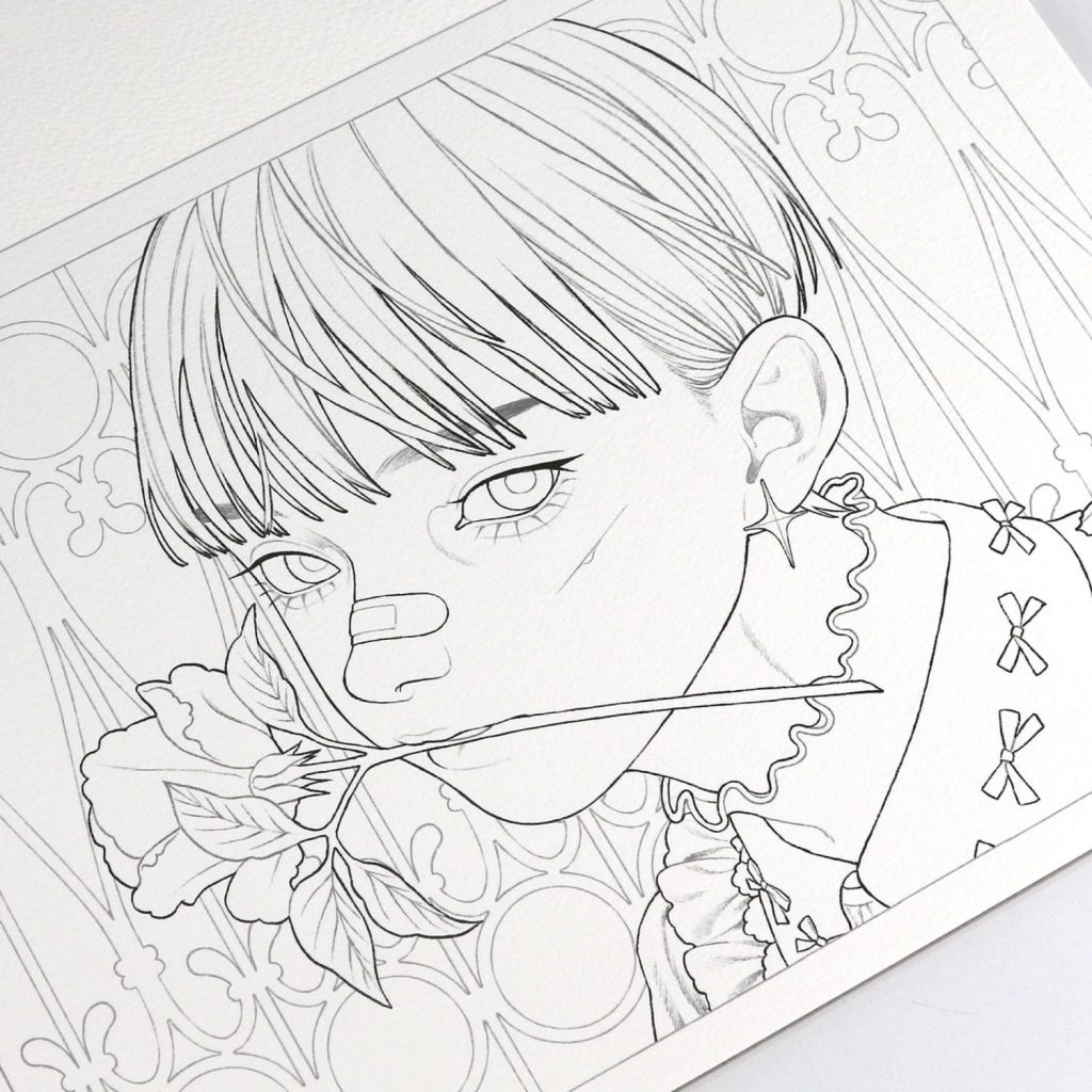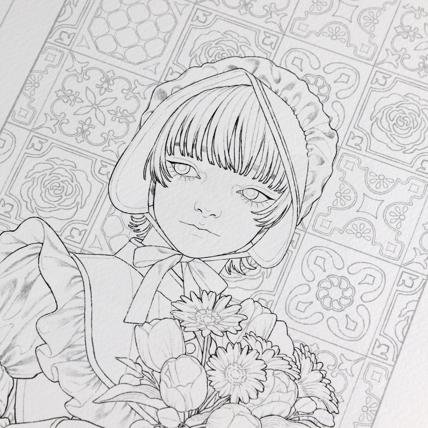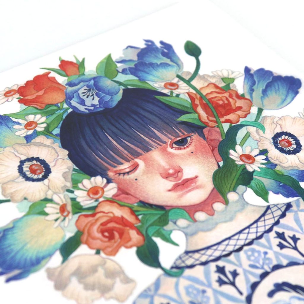 植物と、美しく可愛いらしい人物の組み合わせを好んでよく描いています。